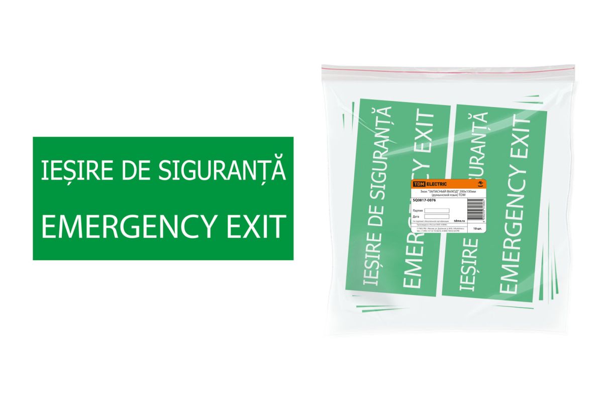 Читать все статьиЗнак «ЗАПАСНЫЙ ВЫХОД» 200х100мм (румынский язык) TDM
